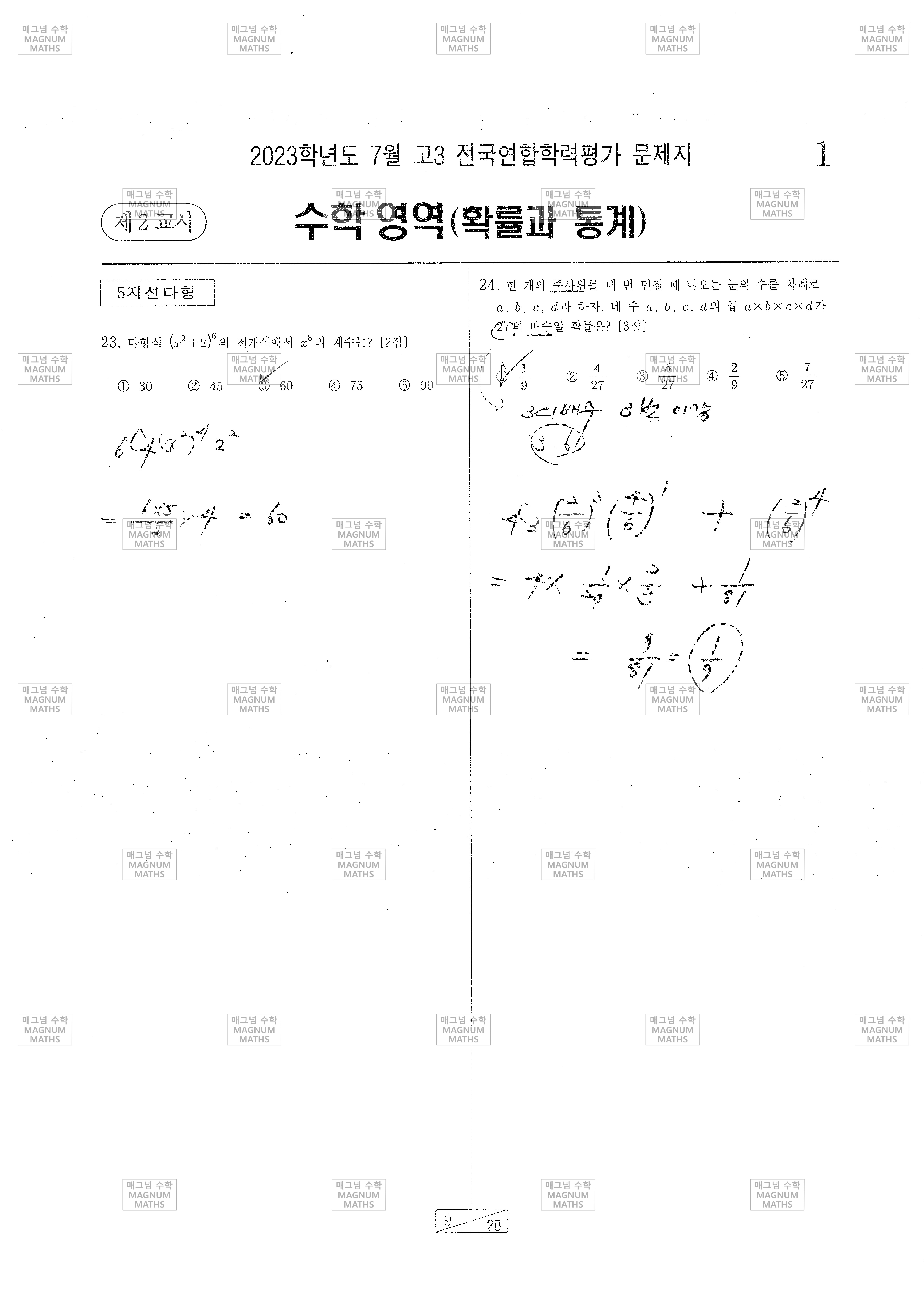 '고3 수학 연도별 모의고사 손풀이 > 2023년도' 카테고리의 다른 글